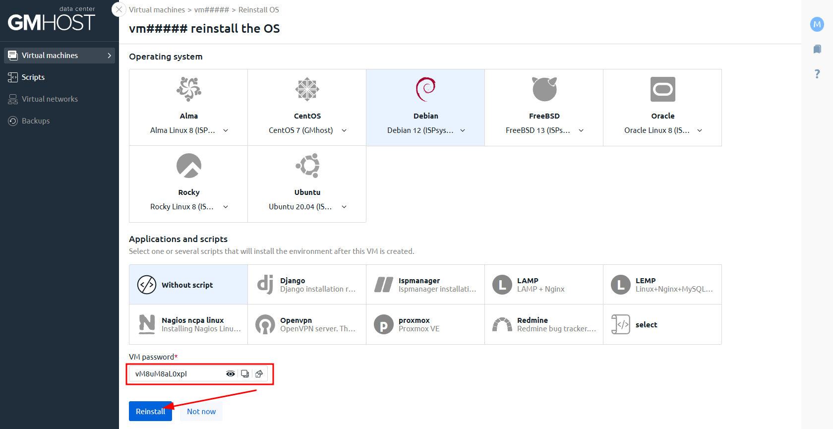 Після вибору бажаних параметрів та збереження пароля, натисніть кнопку "Reinstall" (Переустановить), для початку процесу перевстановлення ОС.
