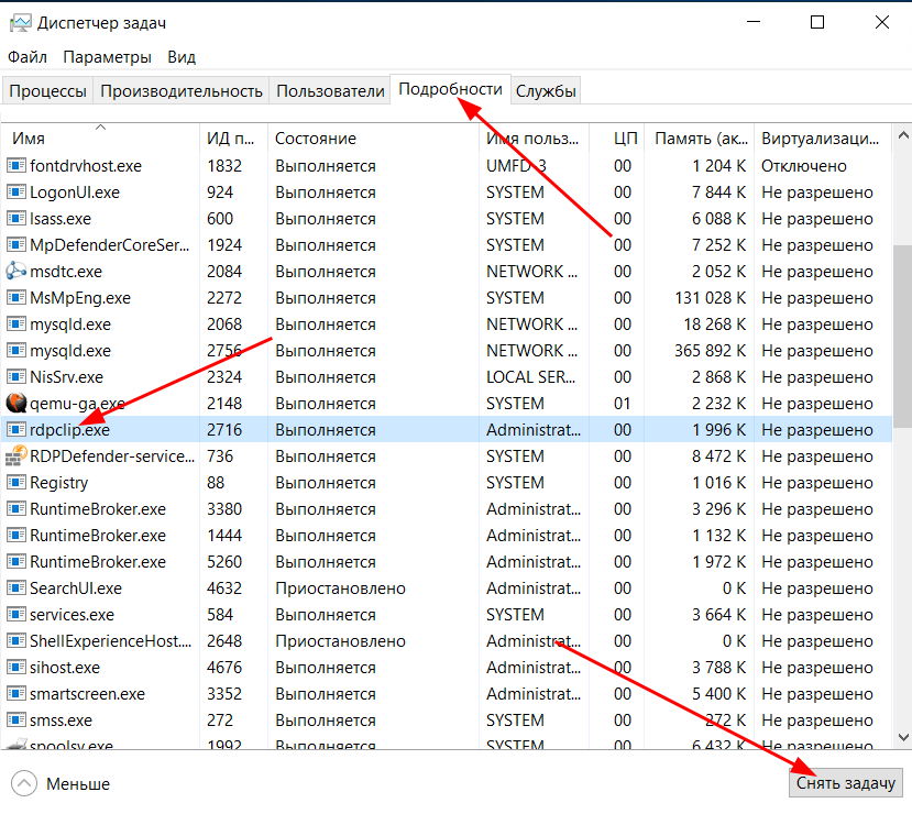 Найчастіше це пов'язано зі збоєм у роботі служби rdpclip.exe, яка відповідає за буфер обміну у віддалених сеансах.