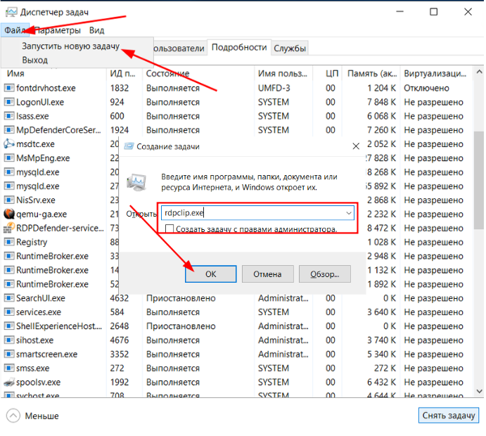 Виправлення помилки копіювання та вставлення copy/paste. Служба rdpclip